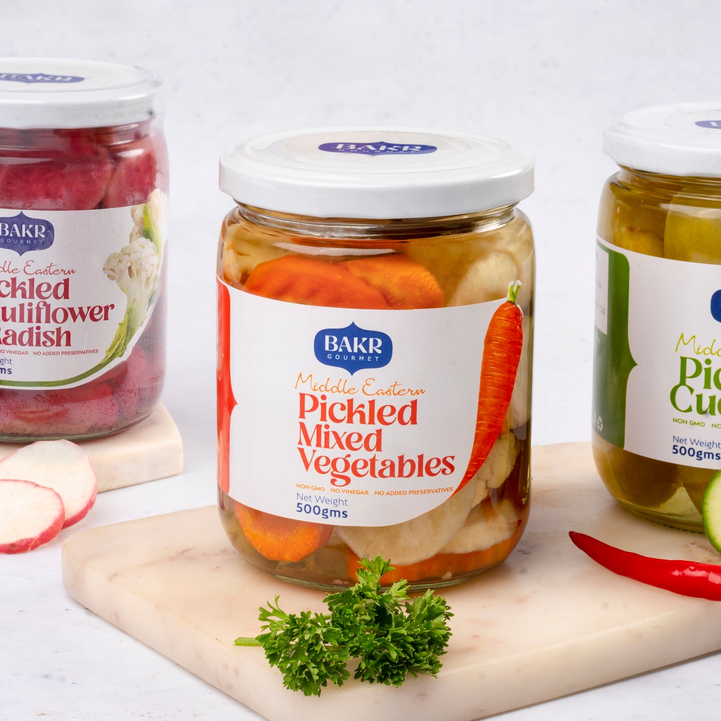 Our tangy pickles are great for mezze or add them to your rolls, sandwiches and burgers !